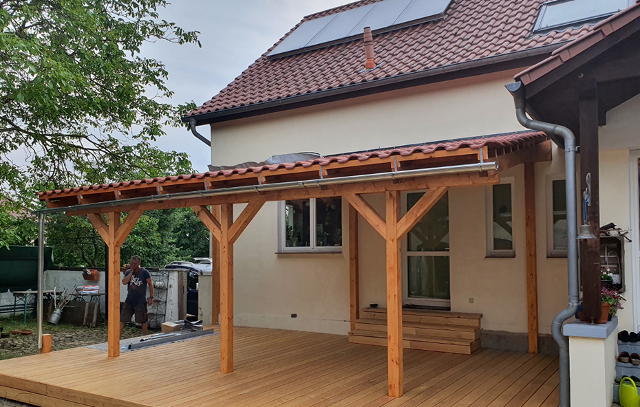 Wir sind sehr zufrieden mit unserer Terrasse. Die komplette Holzterrasse mit Terrassendach war in 3 Tagen erledigt.